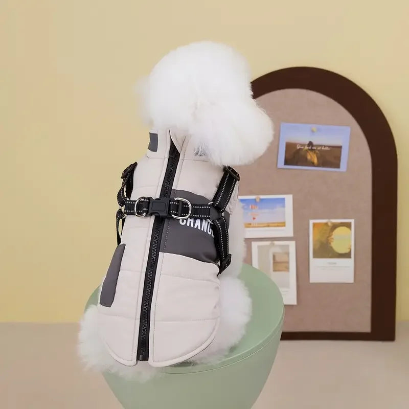 Winter Dog Coat Lined Jacket with Reflective Leash & Easy-Access Zipper Pet Winter Wear, Modern Pet Apparel, Durable Pet Gear
