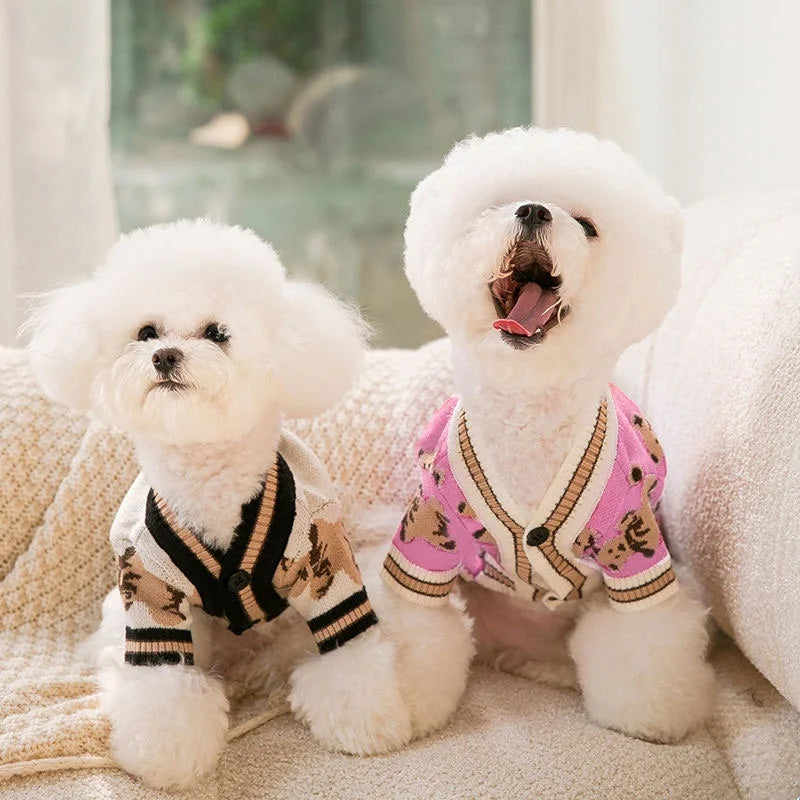 Winter Dog Sweater for Small Dogs Pet Striped Dog Cardigan Bear Print Puppy Knitted Sweater Fashion Cat Coat Poodle Dog Clothes